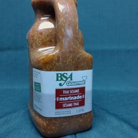 Marinade thaïlandaise au goût sucré et épicé, à la couleur orangée avec graines de sésame.